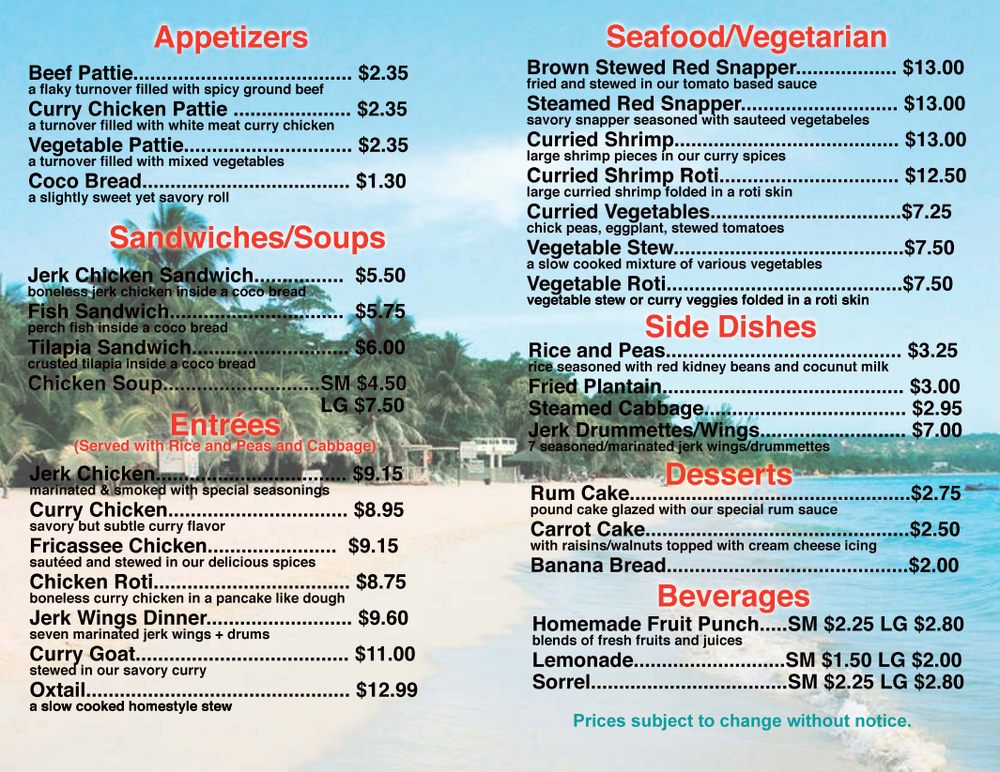 Shrimp marinated in our special curry sauce with onions, tomatoes and green peppers served with rice & peas and a side of cabbage